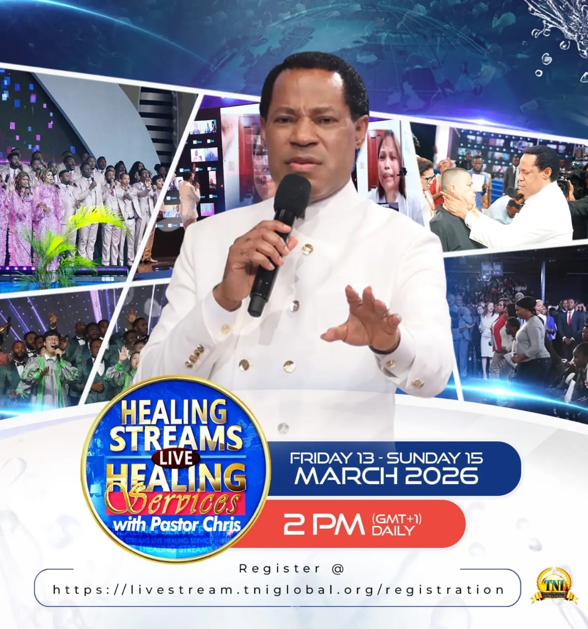 Healing Streams Live with Pastor Chris returns March 13–15, 2026 2PM GMT+1, streaming live for the global body.